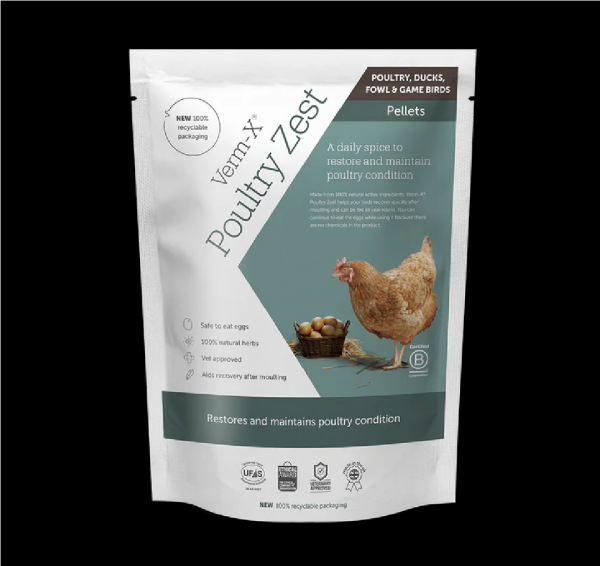 Made from 100% natural active ingredients, Verm-X® Poultry Zest helps your birds recover quickly after moulting and can be fed all year round. You can continue to eat the eggs while using it because there are no chemicals in the product.