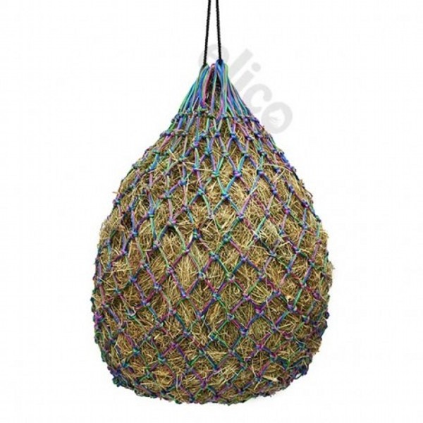 An attractive, strong haynet made from a triple cord all over to help prevent chewing of the net, and a robust hanging rope.