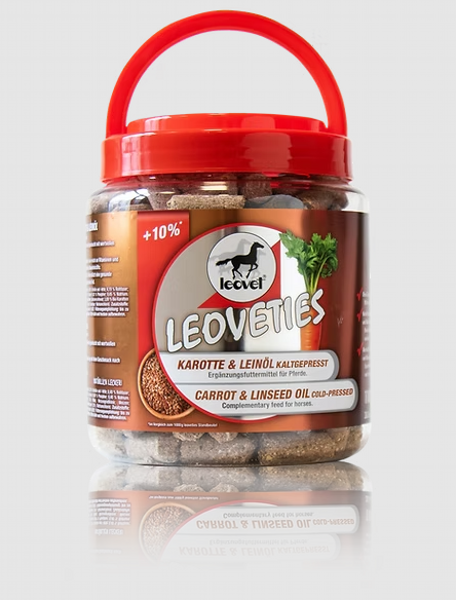 Free from artificial flavourings and full of natural fibre, vitamins and minerals. The leoveties with carrot and cold-pressed linseed oil are particularly tasty and are available in a practical, reusable 1100g tin. 1.1kg