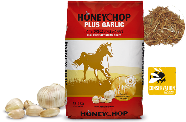 Honeychop Plus Garlic is an oat straw chaff that contains enough garlic in a 1kg per day serving to eliminate buying extra supplements. 12.5kg