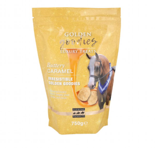 Introducing the new deliciously tasty and irresistible golden goodies horse treats from Supreme Products! These scrumptiously good buttery caramel flavoured treats are the perfect training reward for your horse, ideal for use at home or in the show ring. Packed in a resealable foil bag for extra freshness and flavour. They are sure to become your horse’s favourite! 750g