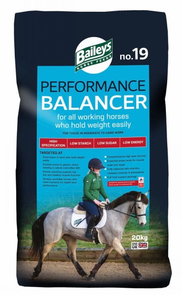 Many riders know that, as workload increases, so do their horses’ nutritional requirements but many also find that a competition mix or cube provides too many additional calories for their “working good-doer”. This is where new improved Performance Balancer comes in as it provides appropriate levels of essential nutrients, without unwanted calories and can be fed as the sole concentrate or added to reduced amounts of mixes or cubes. Performance Balancer is low in starch and sugar, as well as energy, so is suitable for horses prone to gastric ulcers yet who don’t need the calories provided by Ease & Excel. It contains quality protein supplying a superb amino acid profile, to help build and promote muscle and top line and support tissue repair. Boosted levels of antioxidant vitamins and minerals help neutralise free radicals and promote healthy muscle function, while Digest Plus prebiotic and the live probiotic yeast, Actisaf, ensure a healthy gut and fibre digestion. 20kg