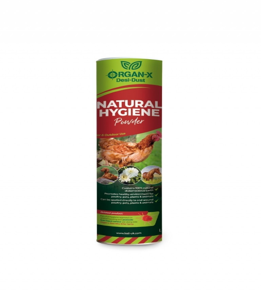 ORGAN-X Desi-DUST Entrapment Powder Ultimate Moisture Removal Powder for the natural promotion of a healthy environment. Desi-Dust is a natural organic (diatomaceous earth) entrapment powder; made up of tiny fossilised silica diatoms. Natural silica has many uses. Absorbing moisture, fats and oils; Aids in plant growth and development; Anti-caking feed additive are but a few. Desi-Dust can be applied on and around pets and animals (avoid contact with eyes), including their bedding, litter areas, cracks and crevices. The natural silica absorbs any moisture, reduces odour and bacteria breeding grounds, resulting in clean dry areas where insects find it impossible to develop. Animal productivity is increased due to comfortable surroundings. Desi-Dust can be applied to plants, their leaves and surrounding soil. Silica is naturally abundant in plants, aids growth and development, but also prevents ideal breeding conditions for crawling insects. Desi-Dust can be liberally applied in and around the home, including in the garden when weather is dry.