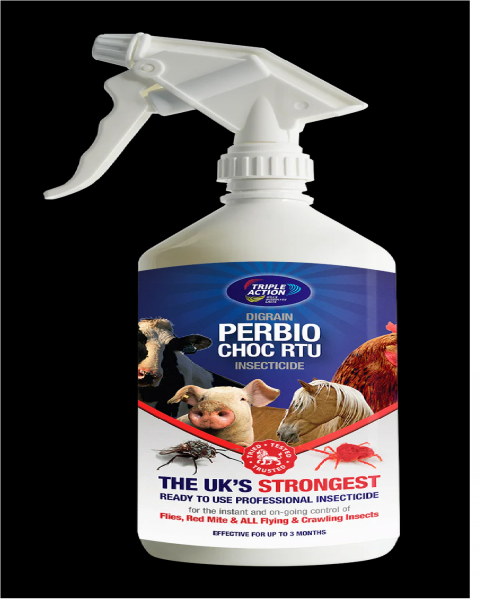 Perbio Choc is specially formulated to instantly kill all flying and crawling insects including Red Mite as well as providing three months of control after a single treatment.