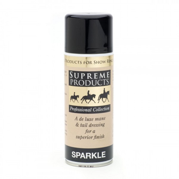 SUPREME PRODUCTS Sparkle is a superior mane and tail dressing which produces body, glamour and shine. Sparkle can be used as an all over body ‘extra’. Fantastic for use on sunny days and under artificial light – a ‘must’ for evening performances! Sparkle can be sprayed over plaits, along the topline, over the body, quarters and down the legs. Sparkle can be used on all mane and tail colours and is an effective detangler. This product does NOT contain glitter. 400ml