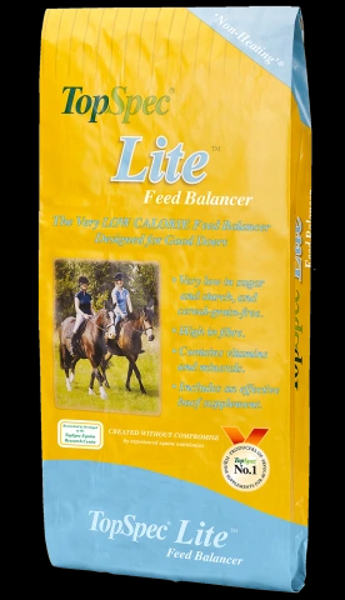 TopSpec Lite Feed Balancer is designed for horses and ponies that are good doers. It is ideal for horses that are overweight when fed as part of a calorie-controlled diet. These are the horses and ponies for whom every single calorie counts, and we do not believe you will find a lower calorie feed balancer anywhere. 15kg