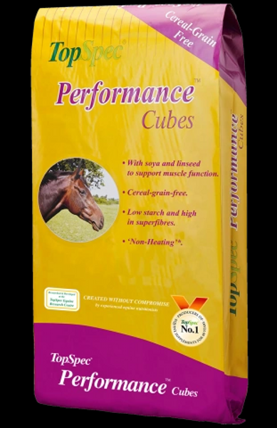 TopSpec Performance Cubes are designed to provide the energy needed for horses to perform well but are ‘Non-Heating’ and ideal for horses that need to focus on their jobs. Performance Cubes are cereal-grain-free and high in superfibres. At the same time they have a good Digestible Energy value of 12.5 MJ/kg; equivalent to most cereal-containing competition feeds. 20kg