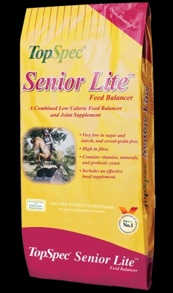 TopSpec Senior Lite Feed Balancer is an ideal balancer for stiff elderly horses and ponies that need their weight controlled; they are usually good doers and may be overweight. It combines the benefits of a low-calorie feed balancer and a joint supplement, in a highly cost-effective way. 15kg